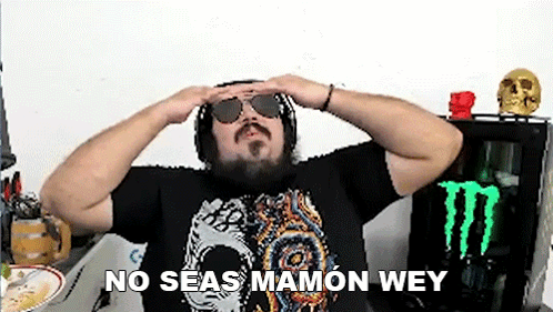 Agbin3r reacts with 'No Seas Mamón Wey' while wearing sunglasses and headphones.