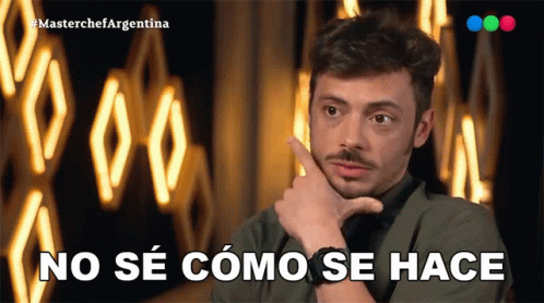 Tomás Fonzi from Masterchef Argentina expressing 'No sé cómo se hace' while touching his chin in thought.