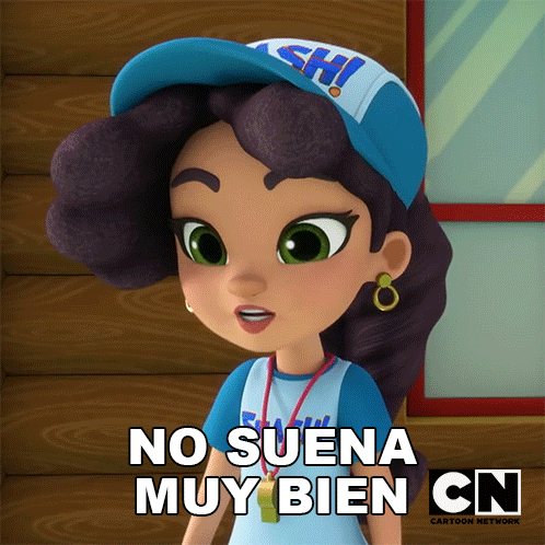 A cartoon character from Campamento Smash expresses concern, saying 'No suena muy bien' (It doesn't sound very good).