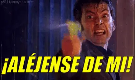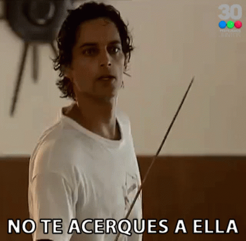 Joaquin Furriel as Marcos Lombardo issues a stern warning, saying 'No Te Acerques A Ella' while holding a fencing foil.