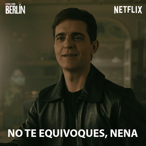 Pedro Alonso as Berlín delivers the iconic line 'No te equivoques, nena' from the Netflix series.
