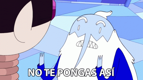 Ice King from Adventure Time reacting, saying 'Don't be like that' in Spanish.