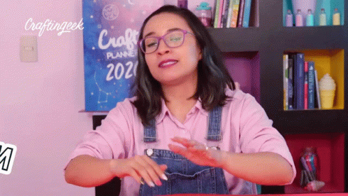 Liz Rangel from Craftingeek expresses 'No tengo idea' with a shrug and a smile, conveying cluelessness.