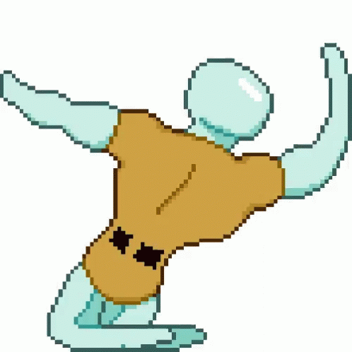 Pixel art animation of Squidward Tentacles from Spongebob Squarepants performing a dynamic, spinning pose.
