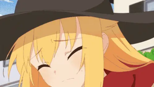 Nokotan, the anime girl with antlers, shows a funny, spicy red face expression.