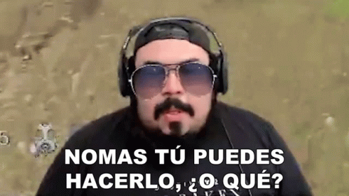 Agbean3r, a man with a beard, sunglasses, and headphones, asks 'Nomas Tú Puedes Hacerlo, ¿O Qué?'