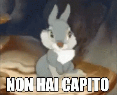 Thumper from Bambi looks confused with the Italian caption 'Non Hai Capito' (You didn't understand).