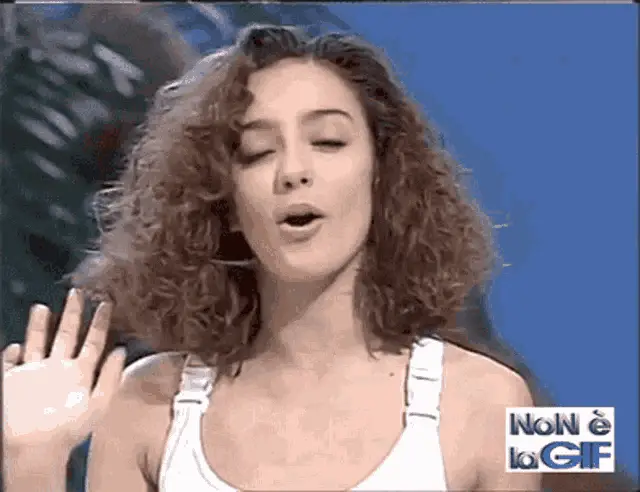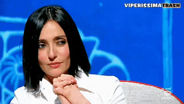Ambra Angiolini from Non è la Rai making the 'porta male' gesture, signifying bad luck.