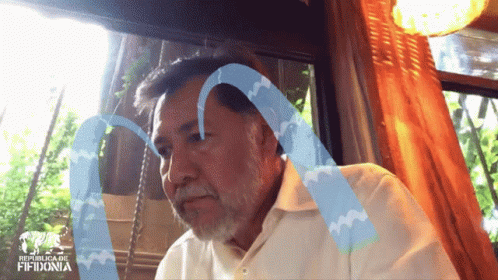 Noroña appears sad, with animated tears streaming down his face, in front of a 'Republica de Fifidonia' sign.