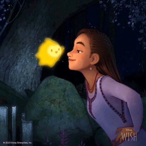 Asha, voiced by Ariana DeBose, gets a cute nose boop from Star in Disney's animated movie Wish.