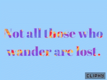 Inspirational quote 'Not all those who wander are lost' displayed on a vibrant blue background with colorful text.