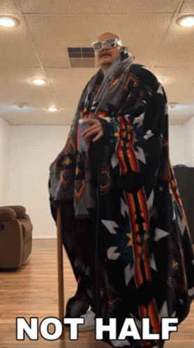 420doggface208 lip-syncs to a song about money, wearing a blanket and sunglasses, holding a cane.