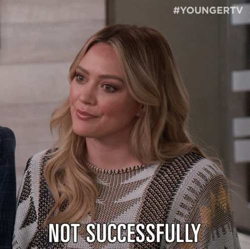 Hilary Duff says 'Not Successfully' in a scene from Younger TV, wearing a patterned sweater.