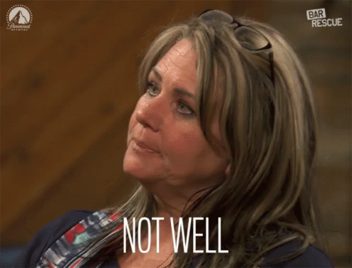 A woman on Bar Rescue expresses her feelings, with the caption 'NOT WELL' displayed.