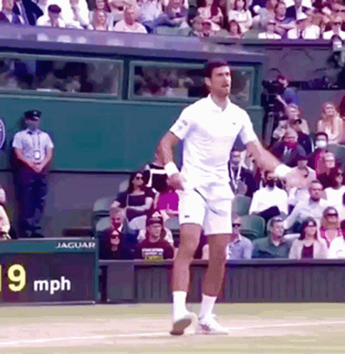 Novak Djokovic kicks the dirt on the tennis court during a match, showing frustration.