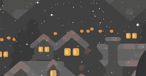 Animated scene of a snowy winter night transforming into a festive New Year's tree with gifts.