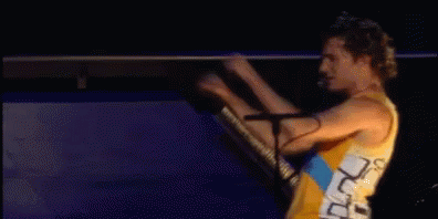 NSYNC's JC Chasez performing a dynamic dance move, arms extended, in an athletic pose.