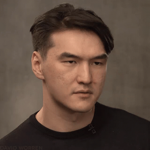 Nurlan Saburov's expression shifts from a pout to a serious look, with 'DAVID WORREN' visible in the corner.