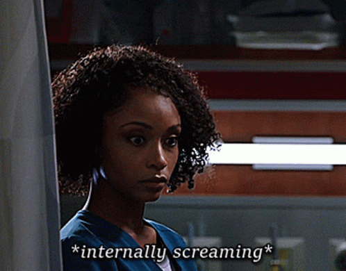 Yaya Da Costa as April Sexton from Chicago Med reacts with an internal scream, a relatable moment.