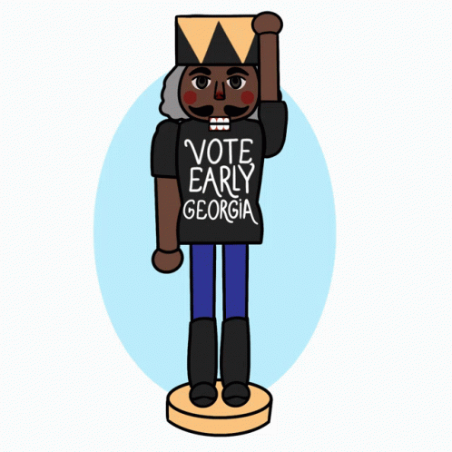 A unique Black nutcracker Christmas decoration wearing a 'Vote Early Georgia' shirt and a crown.