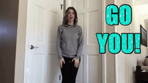 Nutritiondoula enthusiastically encourages viewers with hand gestures and the motivational on-screen text 'GO YOU!'.