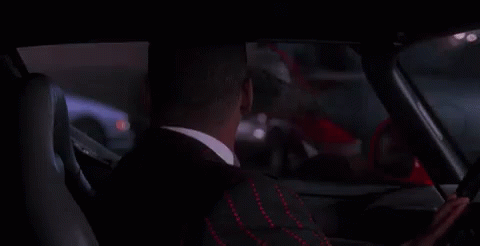 Eddie Murphy as the Nutty Professor in a car, showing an exaggerated tongue and lips.