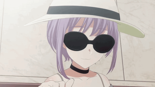 a girl wearing sunglasses and a hat giving a thumbs up