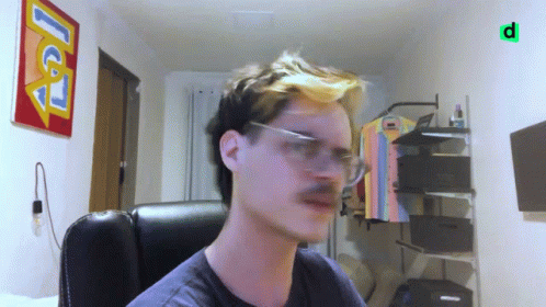 Man with glasses and mustache looks confused as green question marks appear around him.
