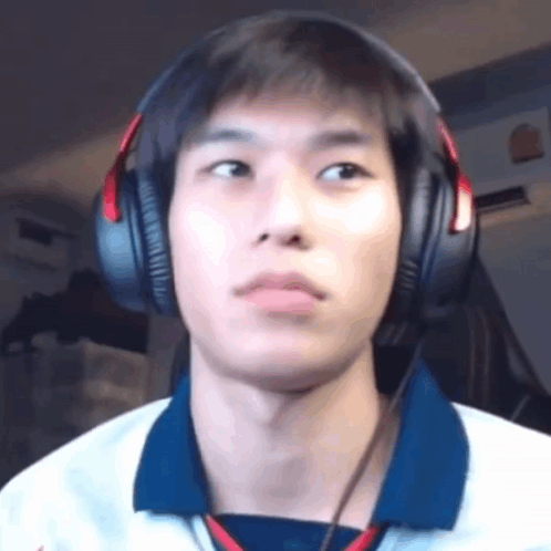 Offroad Kantapon, wearing headphones and a blue shirt, shows a cute, pouty expression.
