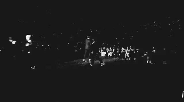 Og Buda in a fur-hooded coat, performing at 6 AM in Budapest, captured in a grainy black and white style.