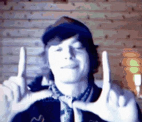 Ogbuda makes 'L' signs and a heart shape with his hands in a blurry, filtered video.