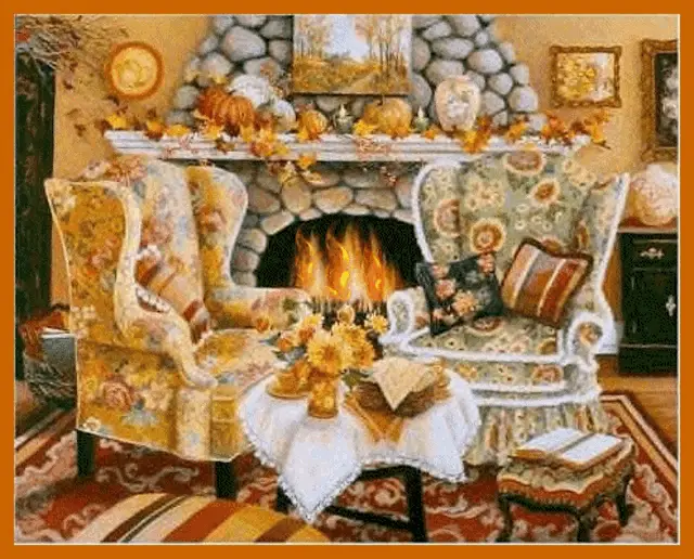 loadingLiving Room Painting with Fireplace