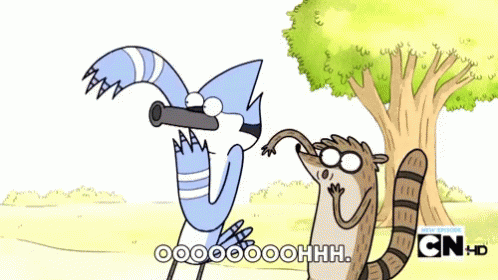 Mordecai and Rigby from Regular Show react with an exaggerated 'OOOOOOOOOHHH' expression.