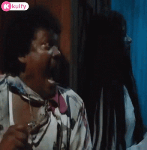 Shakalaka Shankar from Raju Gari Gadi reacts with an exaggerated expression of fear and shock.
