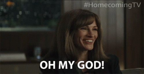 Julia Roberts as Heidi Bergman reacts with a surprised 'Oh My God!' in a scene from Homecoming.