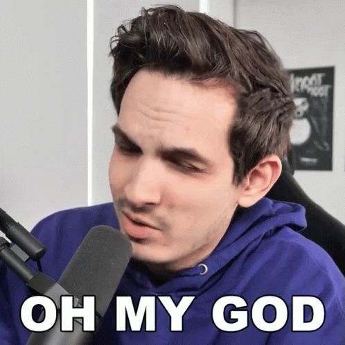 Nik Nocturnal, wearing a purple hoodie, reacts with an 'Oh My God' expression while speaking into a microphone.