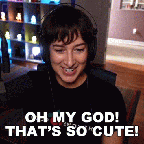 Alli Speed reacts with delight, exclaiming 'Oh My God! That's So Cute!' while wearing headphones.