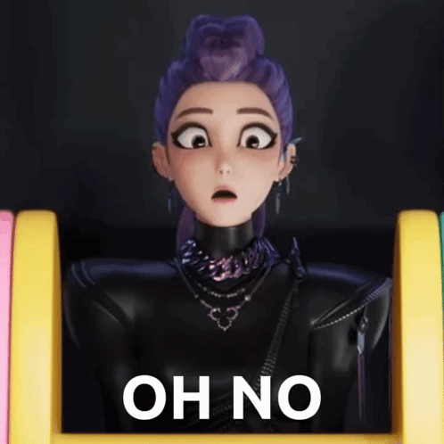 Kang Rumi reacts with an 'Oh No' expression, a character from K-pop Demon Hunters.