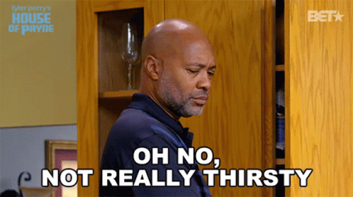 Floyd Jackson (Palmer Williams Jr.) from House of Payne says 'Oh no, not really thirsty' in a kitchen scene.