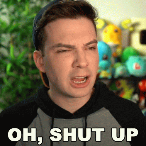 Michael Groth from MandJTV makes a disgusted face with the caption 'OH, SHUT UP' in this reaction clip.
