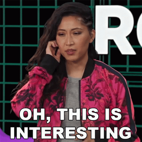 Mari Takahashi reacts with 'Oh, This Is Interesting' while wearing a pink floral jacket in a studio setting.