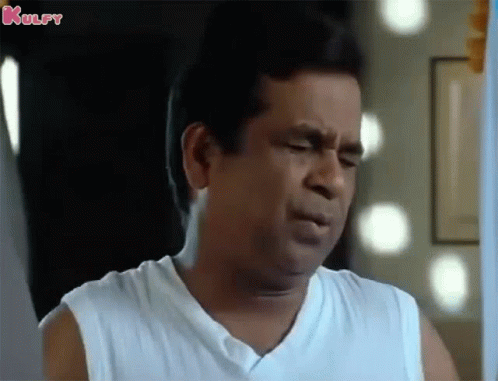 Brahmanandam makes a funny, expressive face in a memorable scene from the Telugu movie Athadu, uttering 'Ohhh Avuna'.