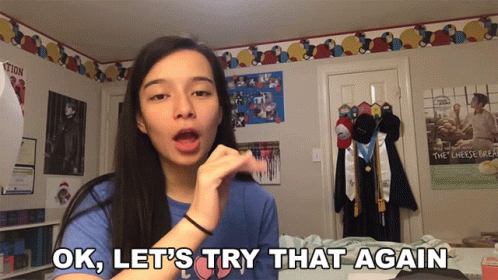 Laughingpikachu says "Ok, let's try that again" with a hand gesture in her bedroom.