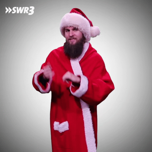 Dominik, dressed as Santa Claus, performs a unique finger-clapping gesture for SWR3.