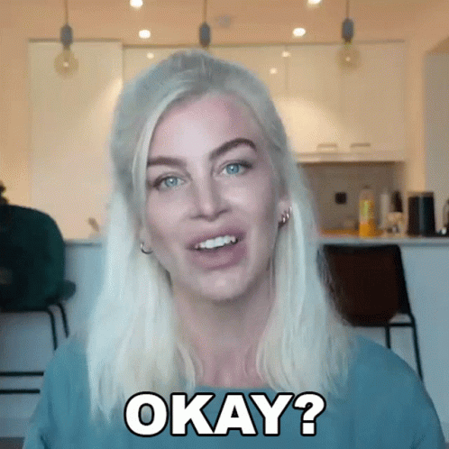 Ania Kubów, a woman with blonde hair, smiles and asks 'Okay?'.