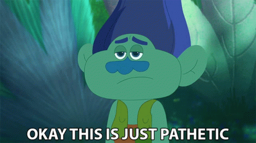 Branch from Trolls The Beat Goes On expresses his misery, stating 'Okay this is just pathetic'.