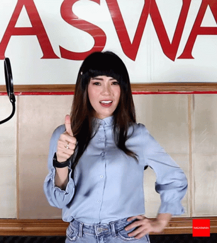 Gladys2Tik Tok gives an enthusiastic thumbs up in front of a Nagaswara background.