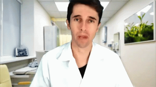 Maycon Sagaz, dressed in a white lab coat, greets the viewer with 'Ola Oi' in a hospital setting.