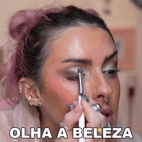 Karen Bachini applies shimmering eyeshadow, showcasing the beautiful makeup look.