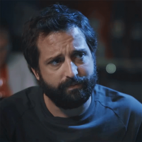 Gregorio Duvivier looks up with a confused and disappointed expression in dim lighting.
